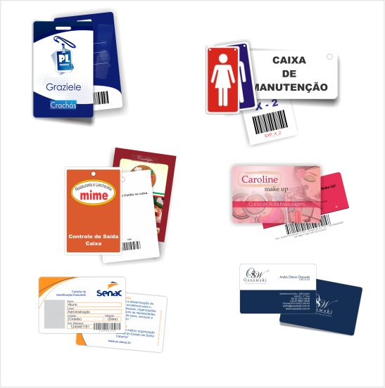 Produtos com Qualidade e Beleza. -CRACHÁS PVC LAMINADO- Produzidos em diversos modelos, poderá ser vertical ou horizontal, possui um brilho especial e protegido por uma película que já é colocada na fabricação, ela é quem protege para não desbotar a arte nem o código de barras.